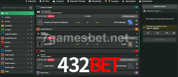 O 432bet oferece uma grande seleção de opções de apostas em e-sports com probabilidades competitivas